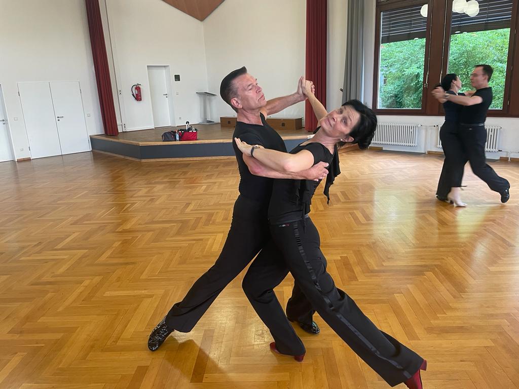 Die Turnierpaare trainieren zielgerichtet und individuell für die Wettkämpfe. Klaus Bucher weiß genau, wie auch das übungsreichste Training Spaß macht. Seine augenzwingernden Bemerkungen sind Kult und motivieren auch nach anstrengenden Tanzstunden.